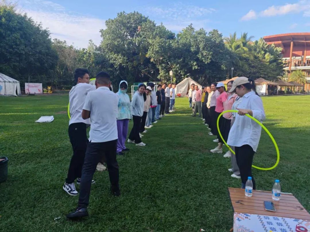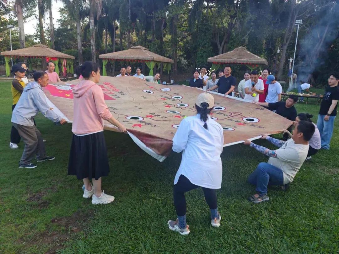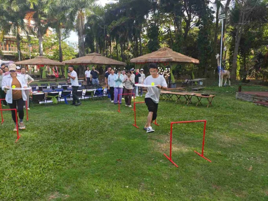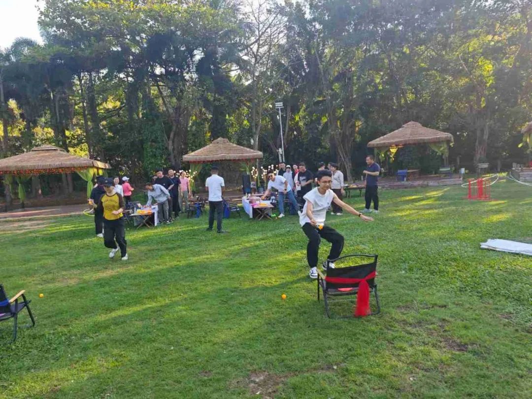 當日午后,全體員工滿懷期待地齊聚在團建活動場地?;顒右潦?,一系列妙趣橫生的暖場小游戲迅速點燃了現(xiàn)場的熱烈氛圍。在“四平八穩(wěn)”“筷子夾球”“草坪龍舟”“重走長征路”等游戲中,展現(xiàn)出了高度的團隊精神和競技熱情。這些小游戲不僅讓大家在輕松愉快的氛圍中迅速消除了工作中的疲憊與壓力,更讓大家深刻體會到了團隊協(xié)作的重要性,為后續(xù)的活動奠定了良好的基礎。