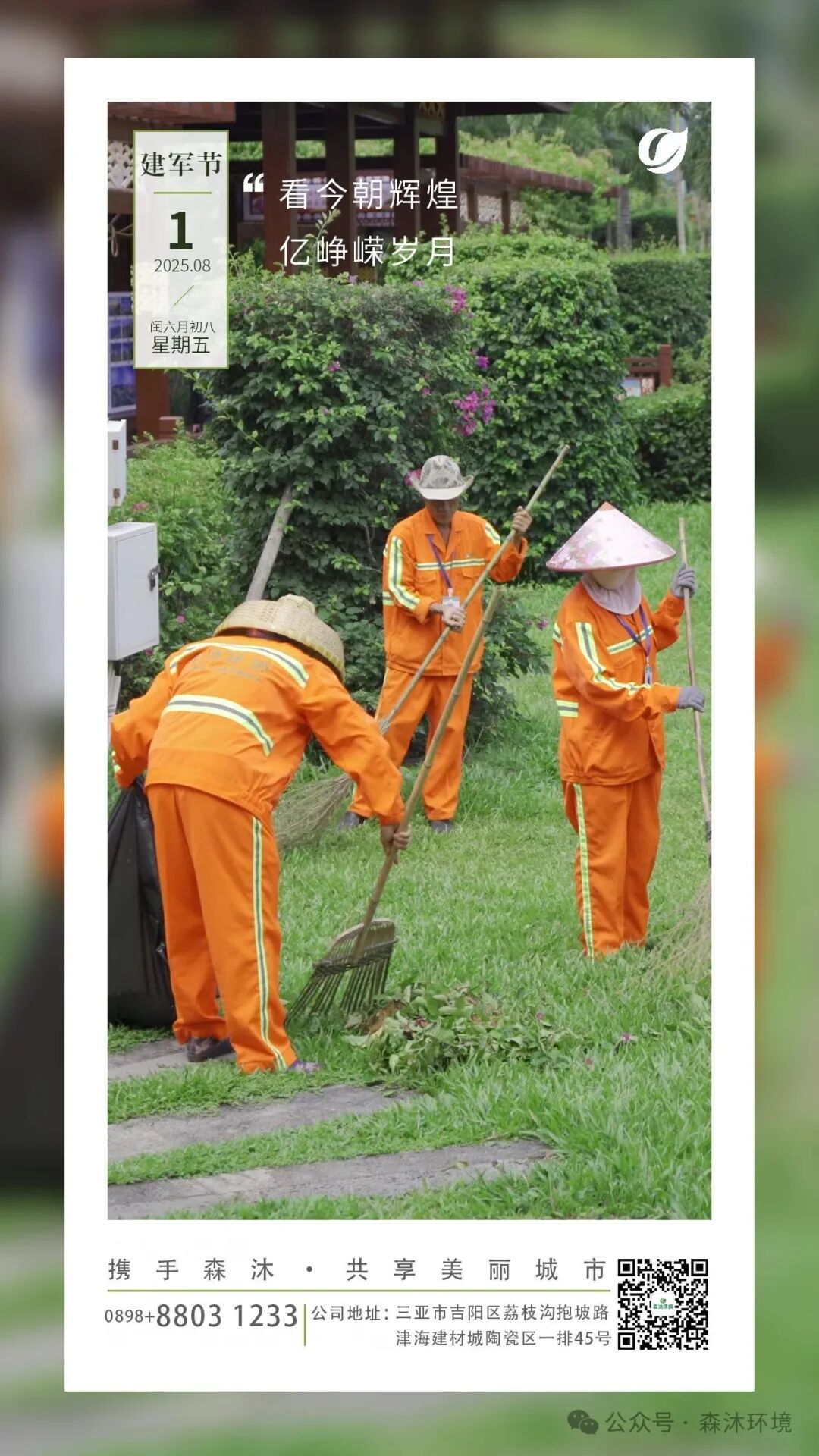 2017年7月創(chuàng)立于海南省三亞市(原名為三亞森沐清潔服務(wù)有限公司,于2020年12月更名為三亞森沐環(huán)境產(chǎn)業(yè)服務(wù)有限公司),是專業(yè)從事環(huán)衛(wèi)保潔和綠化養(yǎng)護的服務(wù)企業(yè),多年來我們致力于人居環(huán)境的改善和城市美化的提升,不斷的開拓創(chuàng)新,為城市環(huán)境可持續(xù)發(fā)展貢獻力量。