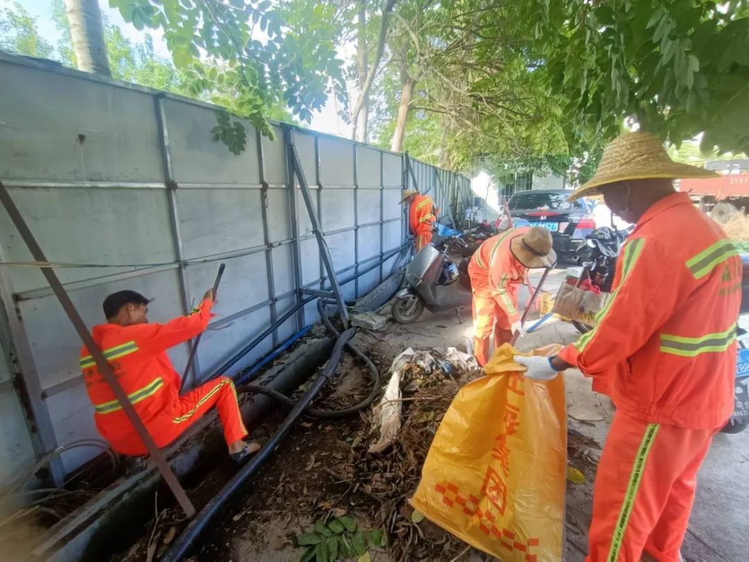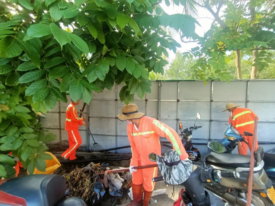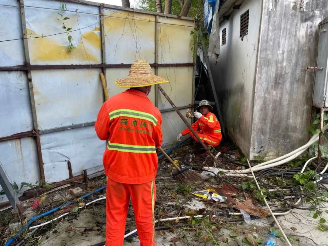 在行動現(xiàn)場,90 名森沐環(huán)境工作人員身著統(tǒng)一工作服,精神飽滿,干勁十足。他們深入各個背街小巷,對衛(wèi)生死角、積水區(qū)域、垃圾堆放點等重點部位進行全面清理。有的工作人員手持掃帚,清掃衛(wèi)生死角的落葉和垃圾;有的清理丟棄已久的大件垃圾;有的則拿著鏟子,仔細清理路邊的雜草和淤泥。同時,兩輛垃圾車往返穿梭,及時將清理出來的垃圾運走,確保環(huán)境整潔衛(wèi)生。