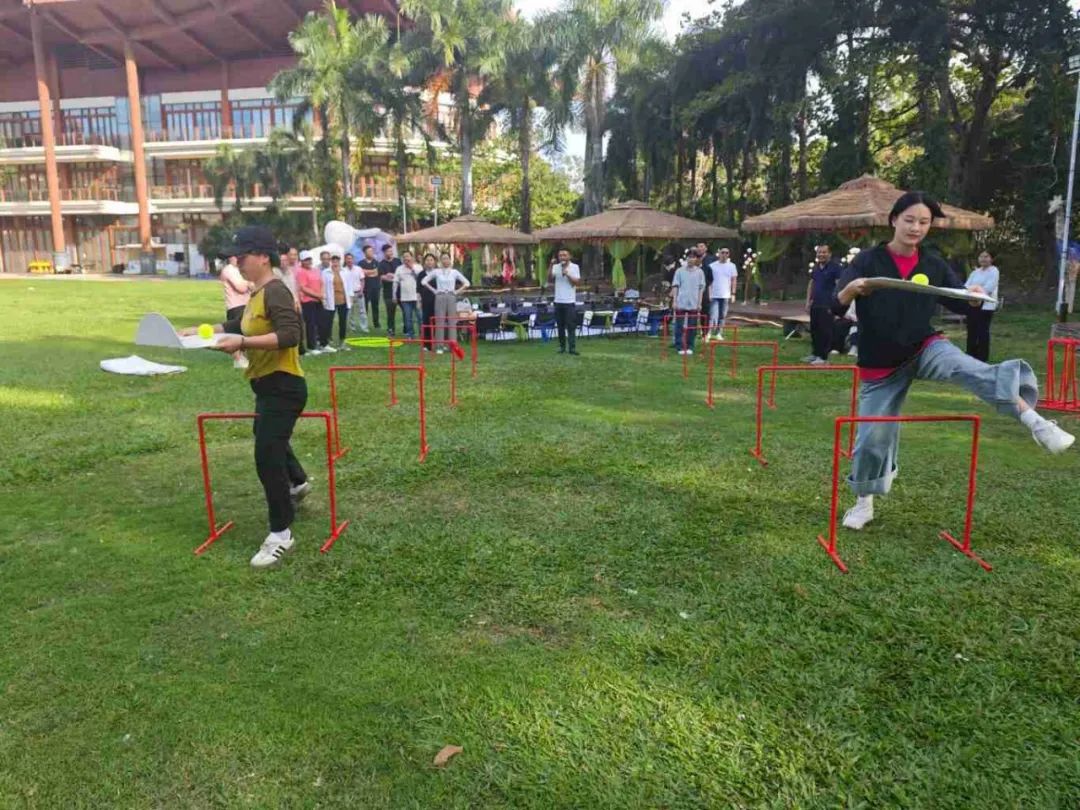 當日午后,全體員工滿懷期待地齊聚在團建活動場地?;顒右潦?,一系列妙趣橫生的暖場小游戲迅速點燃了現(xiàn)場的熱烈氛圍。在“四平八穩(wěn)”“筷子夾球”“草坪龍舟”“重走長征路”等游戲中,展現(xiàn)出了高度的團隊精神和競技熱情。這些小游戲不僅讓大家在輕松愉快的氛圍中迅速消除了工作中的疲憊與壓力,更讓大家深刻體會到了團隊協(xié)作的重要性,為后續(xù)的活動奠定了良好的基礎。